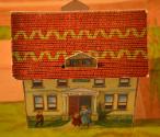 DescriptionColorful lithographed three-dimensional village with houses, a church, a school, a florist shop, trees, animals, people and landscaping. Roofs are separate from the buildings and serve to lock the sides in place. Individual items such as trees and people are supported by oval metal clips.Accompanied by a painted floor map with locations noted for each of the buildings described above.