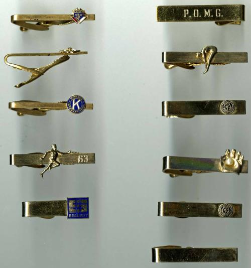 DescriptionEleven gold-plated tie clips owned by Bill Savitt and retailed by Savitt Jewelers in Hartford, Conn.
