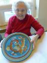 2015.196.248.35: born digital image of Norwegian rosemaling mentor artist Eldrid Skjold Arntzen with plate she painted in her demonstration