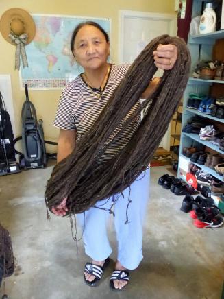 "I was familiar with carpet weaving from my parents’ work, but never had the chance to learn it because I was away at school. Now I am learning the fundamentals of weaving from setting up the loom, preparing materials, and counting graphic design elements. More importantly I have come to truly appreciate rug weaving as not only an art form but also as something that was a source of support for the refugees who fled Tibet after 1959. My involvement in the apprenticeship has sparked the interest of the younger generation in my community. Tibetan youth have become interested in rug weaving and in other art forms like Tibetan folk music, as a way to preserve the culture." - Tseyang Lhamo