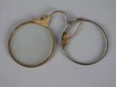 DescriptionSteel-framed pince-nez (.a) with clear, circular lenses and a spring bridge.