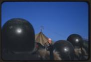 (.20) A landscape view of helicopters on the airfield of a military camp. A soldier in front is on his knees, probably taking a photograph.