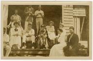 DescriptionView of eleven people sitting or standing on the back steps of the Cheney family vacation home in Marlborough, Connecticut. They are arranged in three rows. In the back are, left to right: Theodora Cheney Dorey (1874-1951), Thomas Langdon Cheney, Sr. (1879-1916), Clifford Dudley Cheney (1877-1948) and Ednah Parker Cheney (1873-1947). In the middle row are: Helen Campbell (Cheney) (1879-1962), an unidentified man, probably Dorothy Cheney (1880-1971), and probably Emily Cheney Learned (1864-1952). In the front row are: Philip Cheney (1878-1948), an unidentified woman, and an unidentified man.